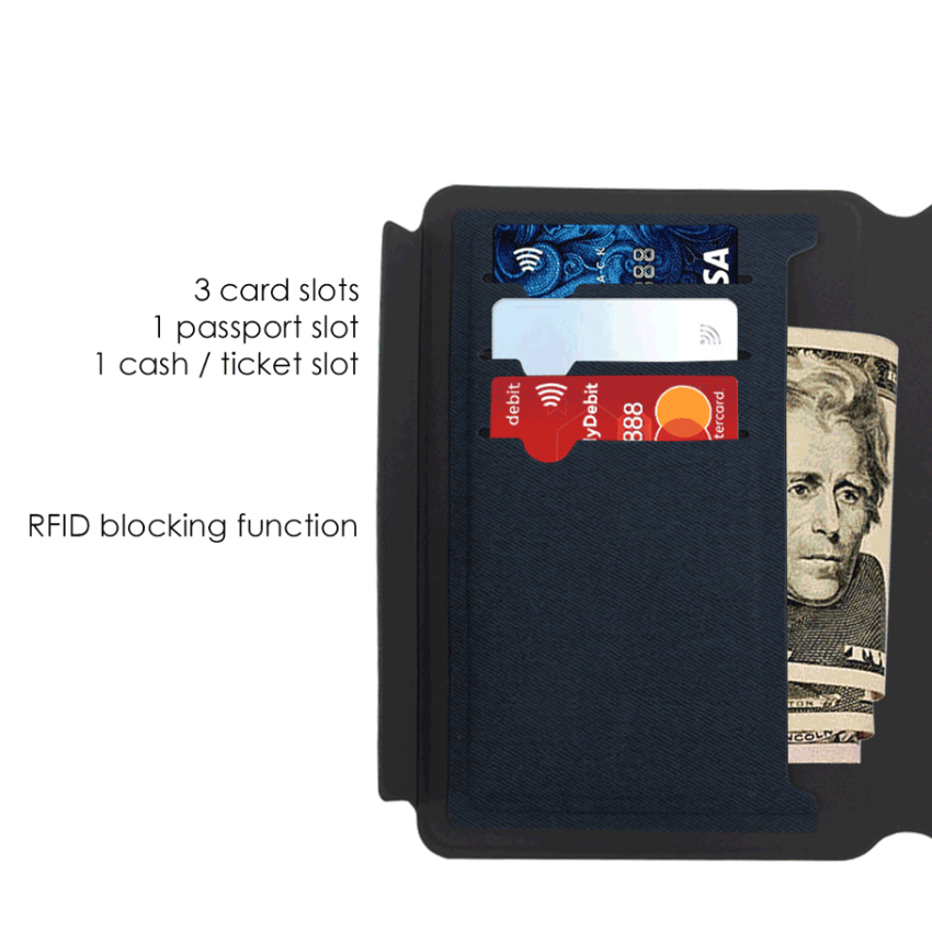 | Features | - 1x passport slot - 3x RFID-blocking card slots - 1x large pocket for cash/ticket/boarding passes - Magnetic closure |